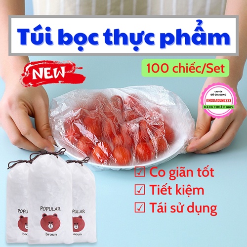 [Set 100 chiếc] Túi bọc thực phẩm ☘ Màng bọc thức ăn co giãn nilon PE bo chun siêu dai tái sử dụng an toàn tiện lợi✴️ CAM KẾT:
