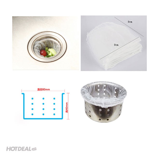 Set 100 chiếc túi lọc rác cho bồn rửaSau mỗi buổi nấu nướng, bạn thường phải đổ rác trong bồn rửa mà vẫn thường xuyên phải kỳ cọ lọc rác bồn rửa vì nó vẫn bám cặn rác bẩn và ố vàng khó chịu. Không những thế, những cặn rác nhỏ vẫn có thể lọt qua lỗ thoát vào cống, tích tụ lâu ngày gây tắc cống nhà bạn.