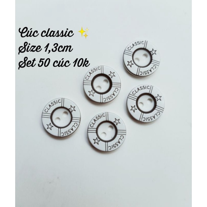 Cúc trắng đen chưa bao giờ lỗi mốt lại unisex trai gái đều dùng được cơ ạ.Set 50 cúc nhựa chỉ 10k