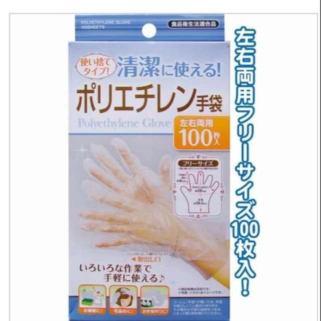 Set 100 găng tay nilon- Chất liệu: nhựa Polypropylene - Công dụng: đeo găng tay trong quá trình làm bếp giúp giữ gìn vệ sinh thực phẩm, tránh nhiễm khuẩn trong quá trình làm bếp. - Hàng nhập từ Nhật, sản xuất tại Trung Quốc.