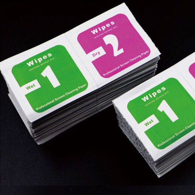 - Giấy lau màn hình điện thoại, ipad, máy tính bảng để dán cường lực , lau mặt kính mắt....gồm:1 tấm ướt ( số 1) lau trước