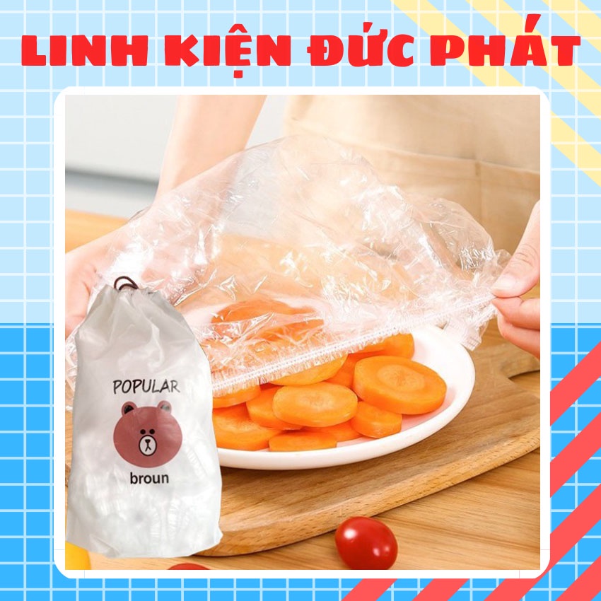 Set 100 Màng Bọc Thực Phẩm Có Chun Co Dãn Tái Sử Dụng Kèm Túi Đựng Hình Gấu.