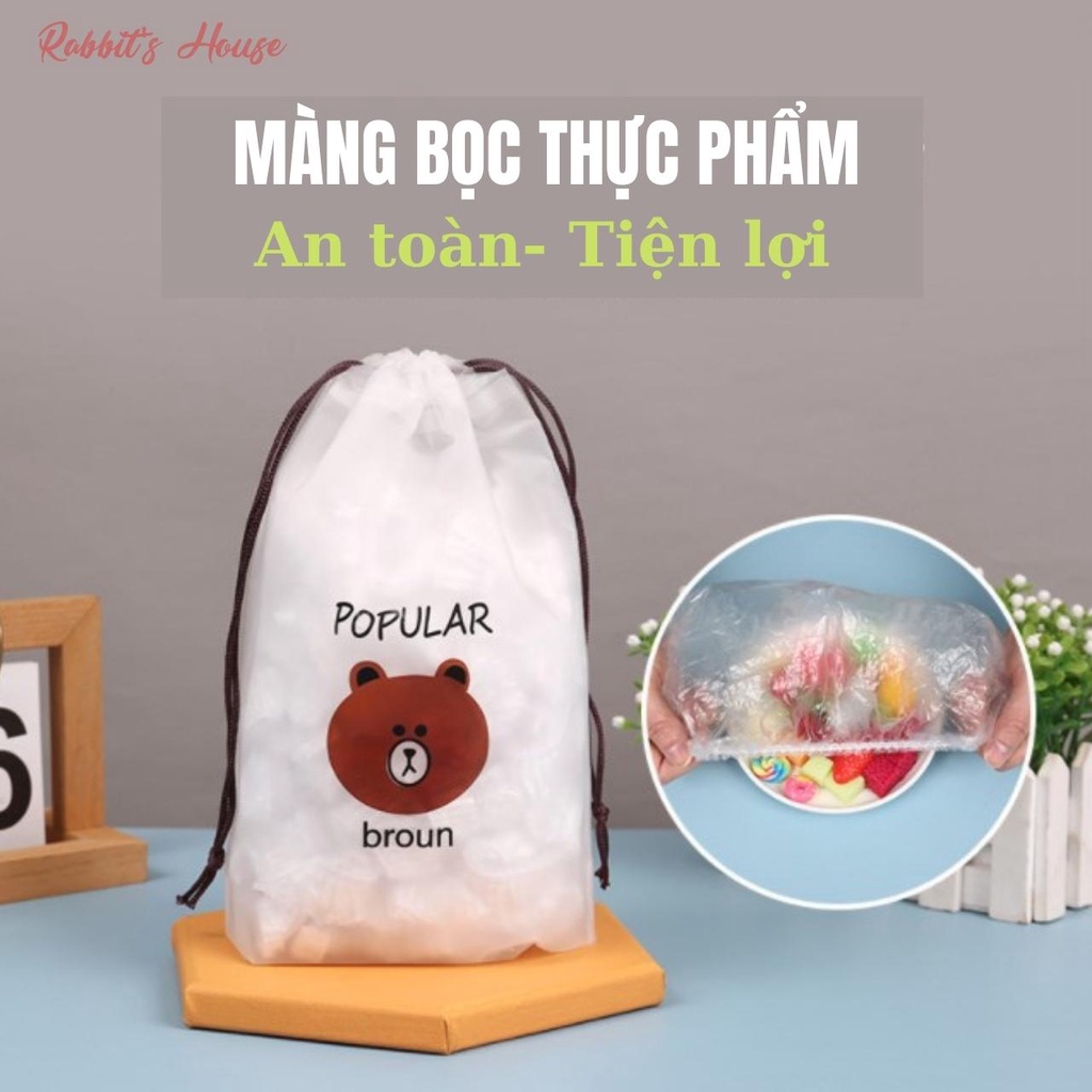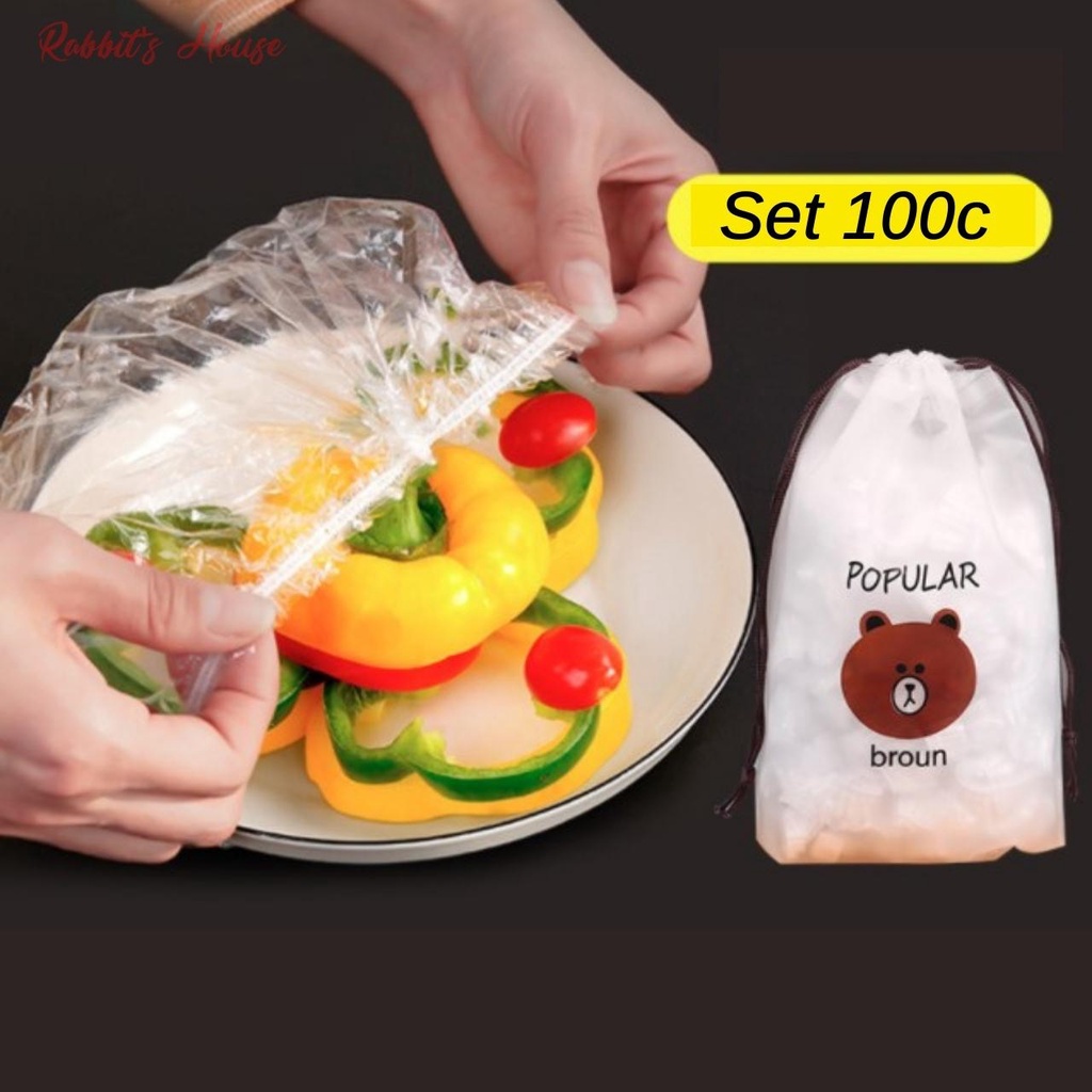 Set 100 Màng Bọc Thực Phẩm Co giãn Siêu Dai Có Chun Hình Túi Gấu