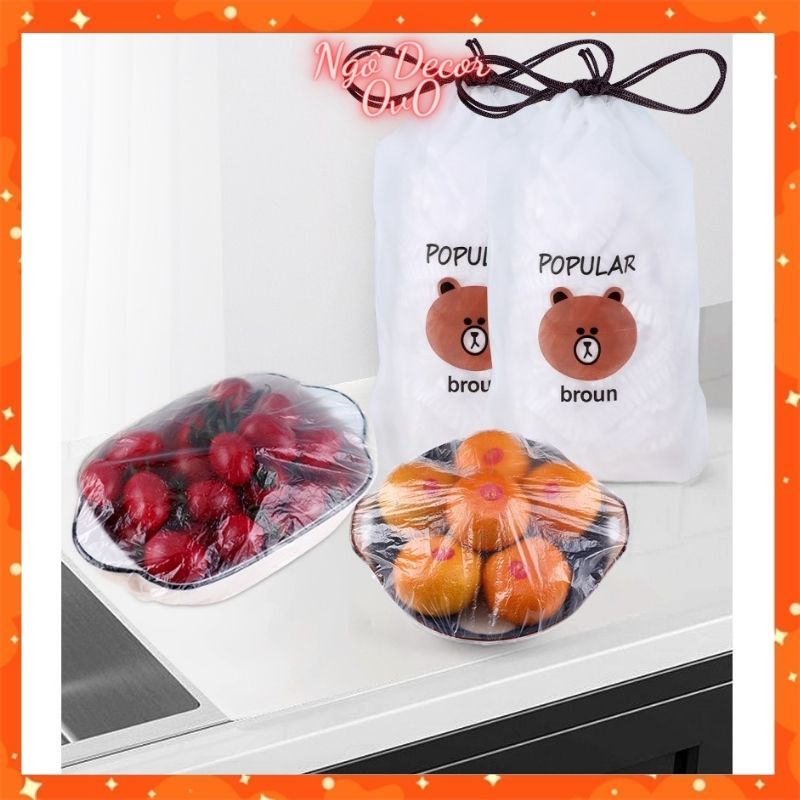 - Tên sản phẩm: Set 100 màng bọc thực phẩm co giãn siêu dai có chun hình túi gấu có thể tái sử dụng
