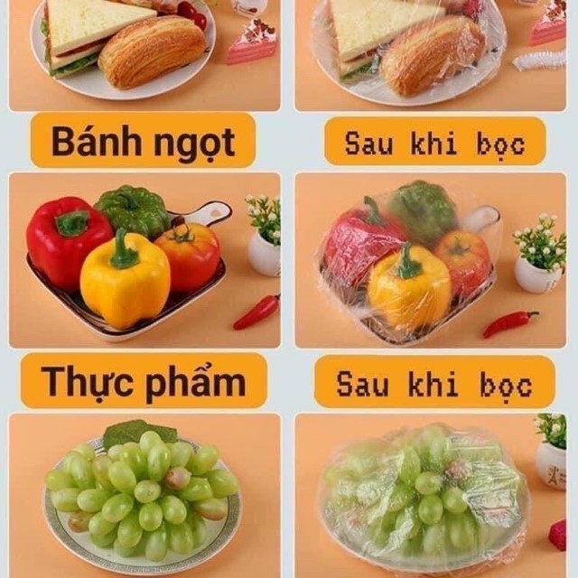 Set 100 màng Bọc thực phẩm có chun co zãn tái sử dụng, bọc thức ăn co giãn-giadungsieure