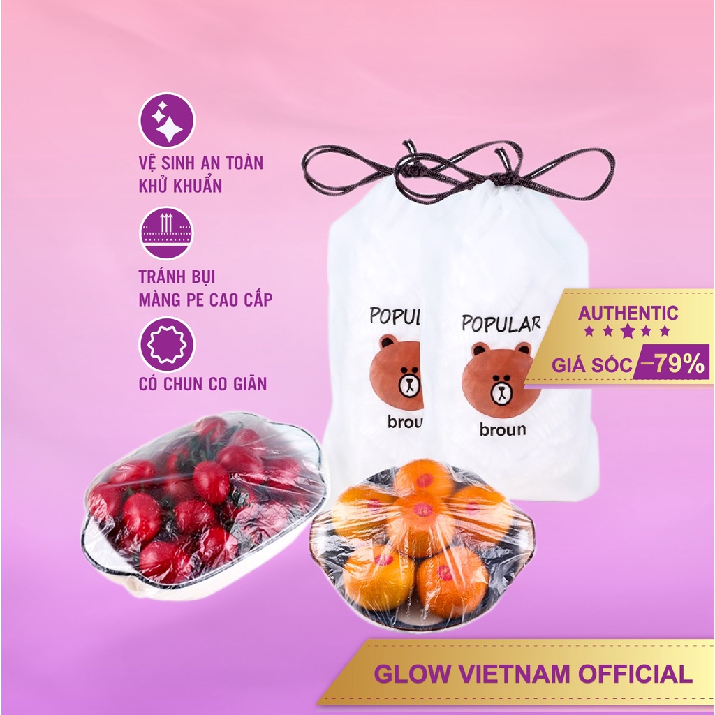 Set 100 màng bọc thực phẩm đa năng vệ sinh có chun co giãn thông minh tiện lợiMàng bọc thực phẩm đa năng có chun co giãn thông minh ( Set 100 cái tặng kèm túi gấu dễ thương)