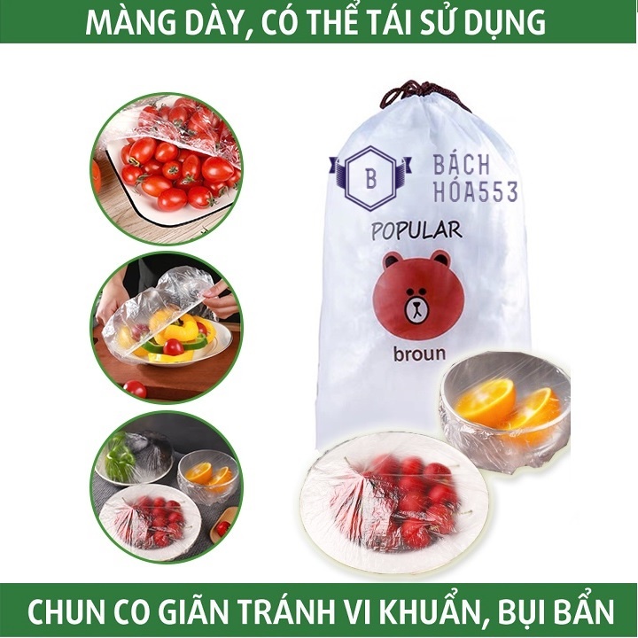 Màng bọc thực phẩm co giãn siêu dai có chun hình túi gấu set 100 chiếc
