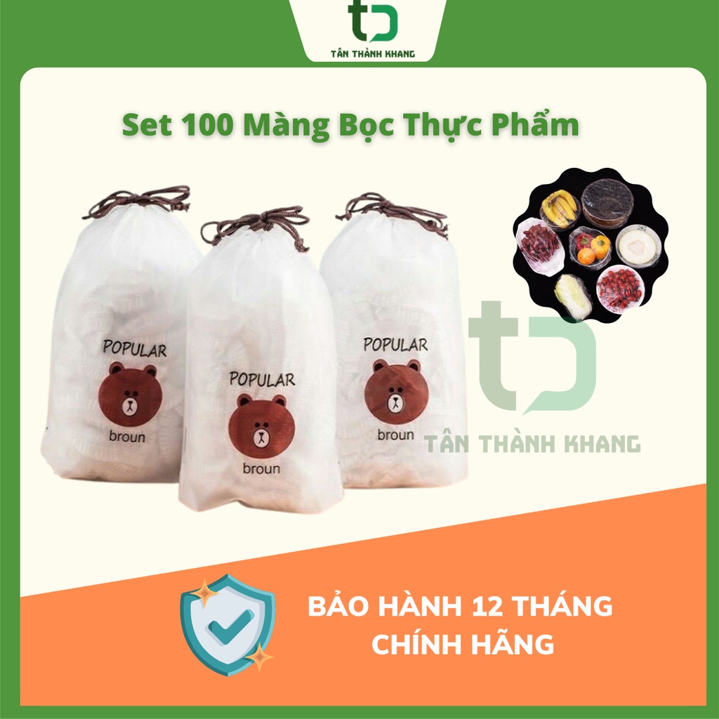 Set 100 Màng Bọc Thực Phẩm PE Có Chun Bọc, Tái Sử Dụng, An Toàn Vệ Sinh