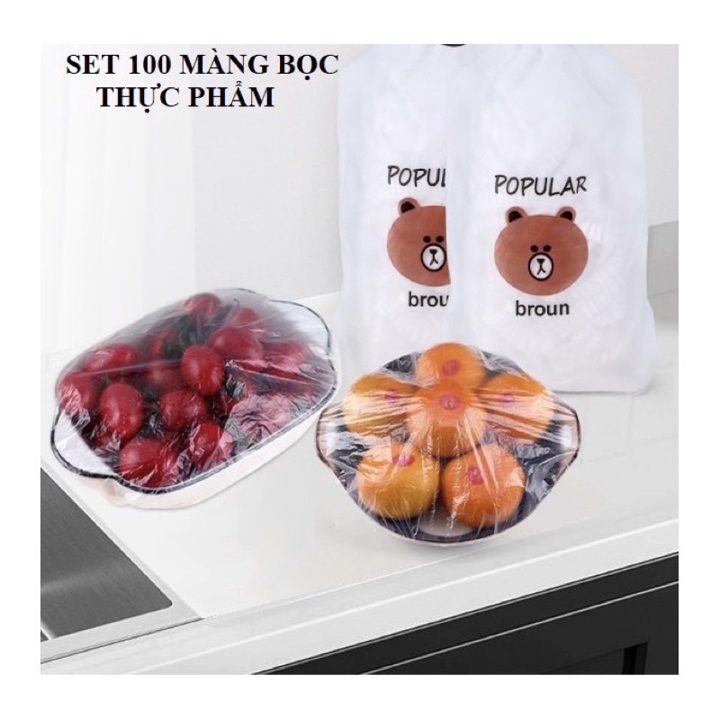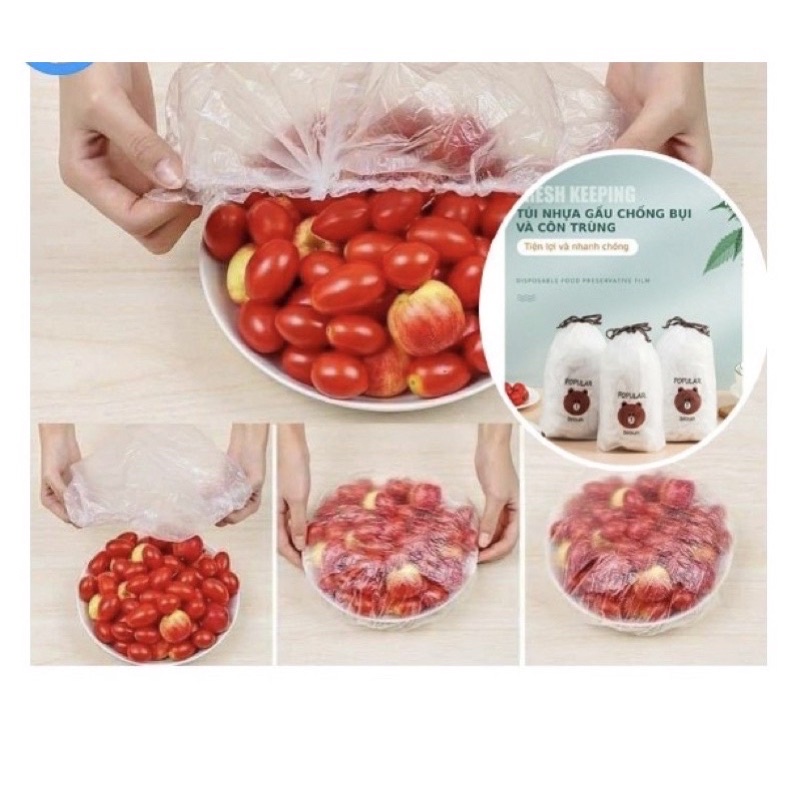 SET 100 MÀNG BỌC THỰC PHẨM TÚI GẤU,MÀNG BỌC THỰC PHẨM PE CÓ CHUN