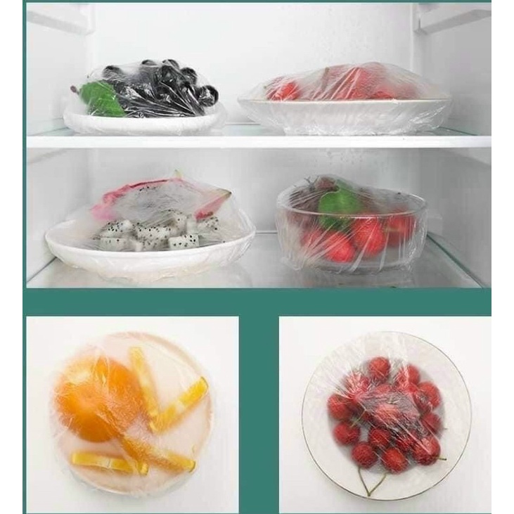 Set 100 màng bọc thực phẩm túi gấu, màng bọc thực phẩm PE có chun bọc đồ ăn co giãn tái sử dụng nhiều lần