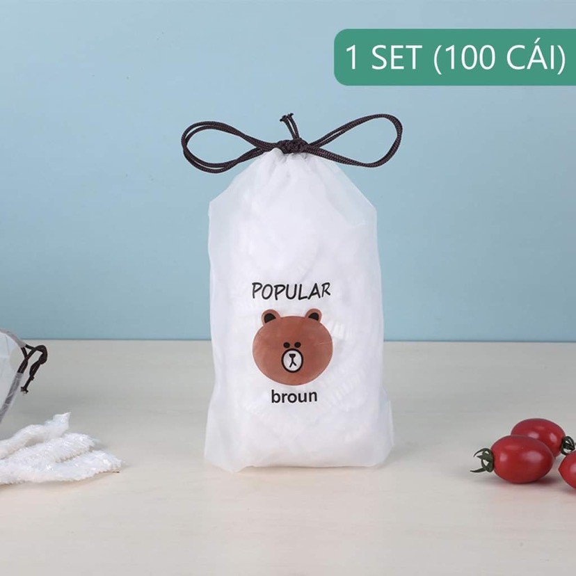Màng bọc thực phẩm co giãn siêu dai có chun hình túi gấu set 100 chiếc