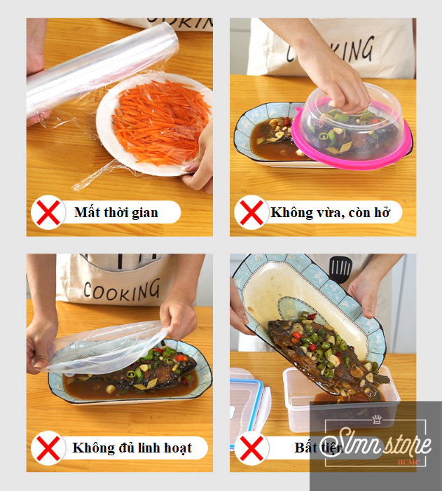 ️ Tạm biệt màng bọc thực phẩm thông thường gây bất tiện, mất thời gian, không có tính linh hoạt.