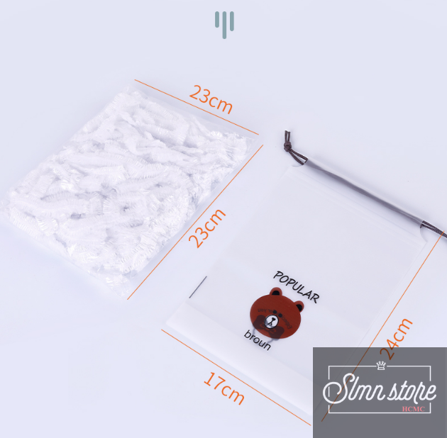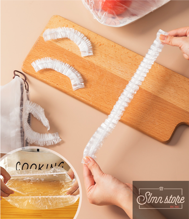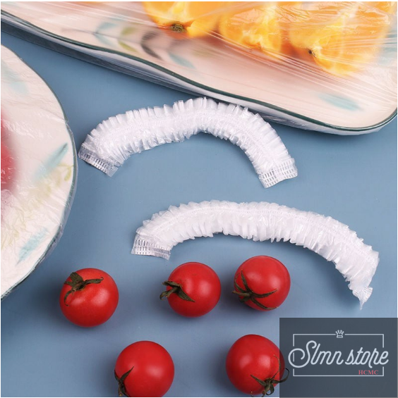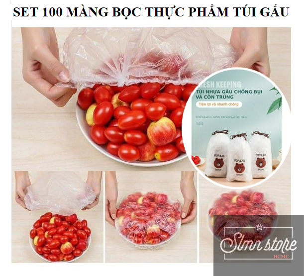 Set 100 màng bọc thực phẩm túi gấu Màng bọc thực phẩm PE có chun bọc đồ ăn co giãn tái sử dụng nhiều lần. SD1_MangBocTP