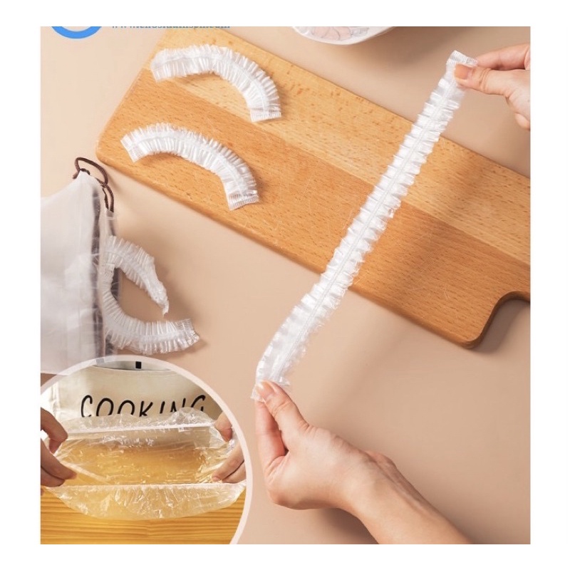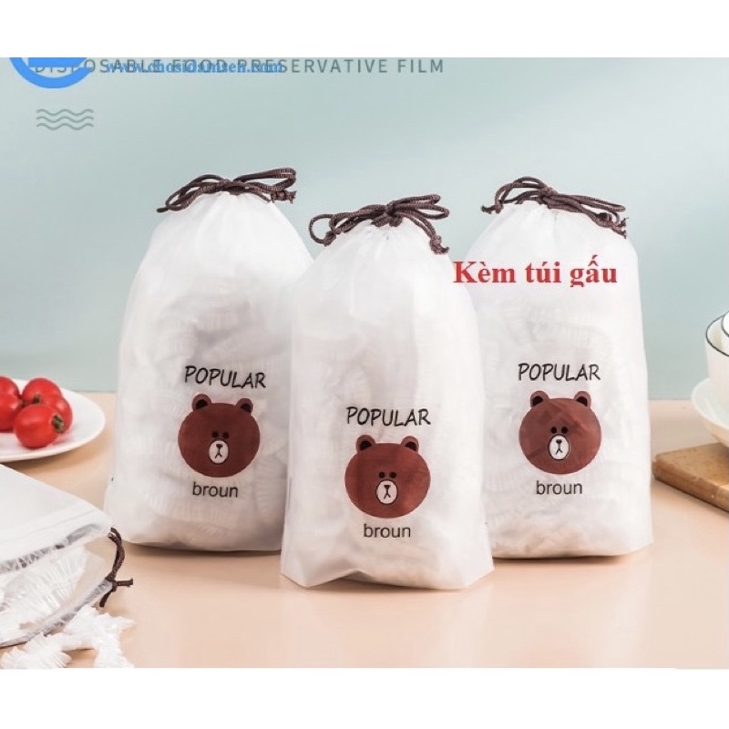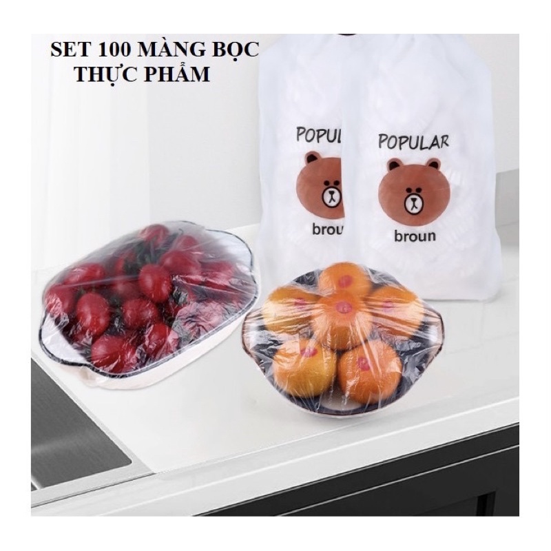 SÉT 100 MÀNG BỌC THỰC PHẨM TÚI GẤU,MÀNG BỌC THỰC PHẨM PE CÓ CHUN BỌC ĐỔ ĂN CO GIÃN TÁI SỬ DỤNG