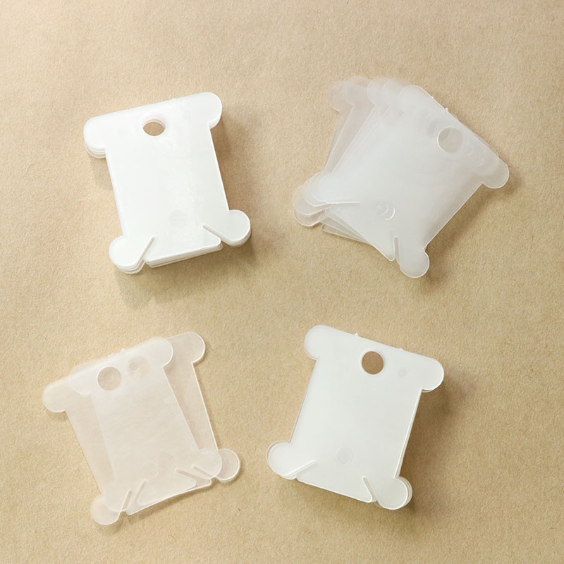 Set gồm 100 miếng cuốn chỉ bằng nhựa màu trong suốt, kích thước 4x3.5 cm.Miếng cuốn chỉ dùng để cuốn chỉ thêu giúp bảo quản chỉ thêu tốt hơn, thuận tiện lấy chỉ thêu trong quá trình thêu thùa.