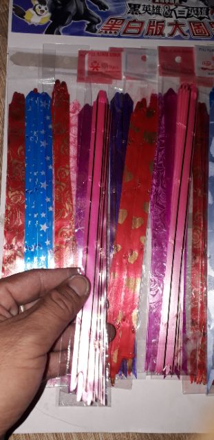 Sản phẩm là 100 sợi dây rút thành Nơ bằng nhựa nhiều màu sắc rất đẹp như hình.Sản phẩm có kích thước rộng 10mm và dài 24cm.