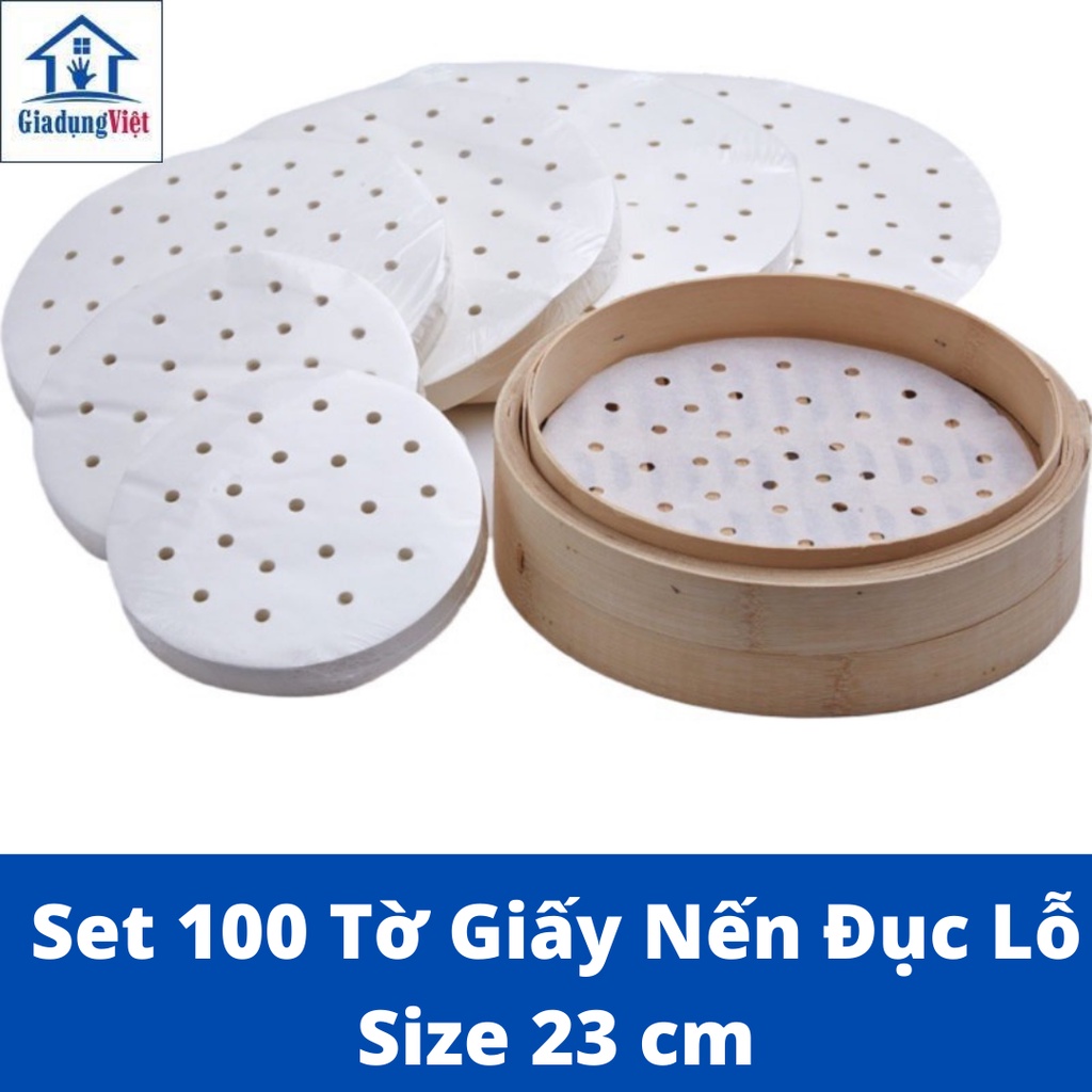Nhà cửa & Đời sống > Dụng cụ nhà bếp > Giấy bạc || Set 100 tờ Giấy nến đục lỗ size 23 cm, Giấy nến tròn lót xửng hấp, nồi chiên không dầu, hấp bánh bao chống dínhCòn hàng