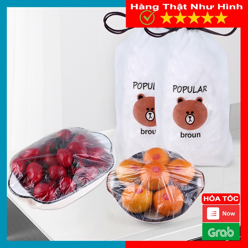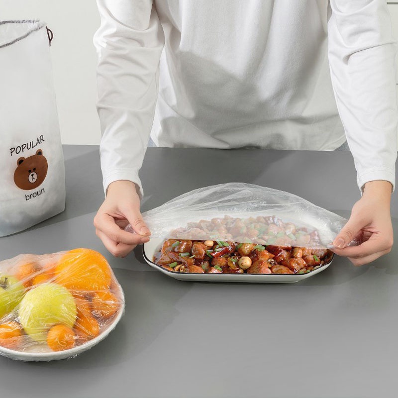 Set 100 Túi Bọc Thực Phẩm Nilong, Màng Bọc Thức Ăn Có Chun Co Giãn Hình Gấu - MTDDT