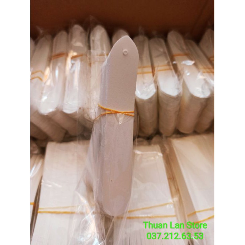 Ví dụ: Vườn hoa mình có nhiều cây lan đột biến bông trằng, những chậu hoa lan mà mình rất thích. nhưng nếu không ghi chú thì khi hoa tàn sẽ không biết chính xác là cây nào Làm bằng nhựa màu trắng, dài 11cm, rộng 2cm, một đầu đục lỗ dùng để móc treo, phần còn lại dùng để ghi chú tên.