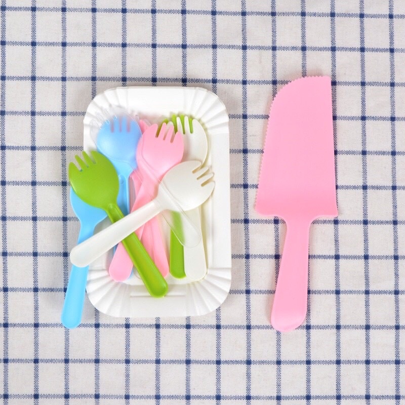 Nhà cửa & Đời sống > Bộ đồ bàn ăn > Dĩa || Bộ set 10c đĩa, dĩa, dao, nến ăn bánh kem sinh nhật màu pastel an toànCòn hàng