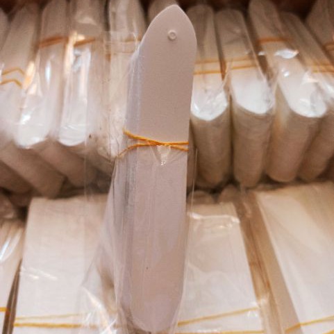 Ví dụ: Vườn hoa mình có nhiều cây lan đột biến bông trằng, những chậu hoa lan mà mình rất thích. nhưng nếu không ghi chú thì khi hoa tàn sẽ không biết chính xác là cây nào Làm bằng nhựa màu trắng, dài 11cm, rộng 2cm, một đầu đục lỗ dùng để móc treo, phần còn lại dùng để ghi chú tên.