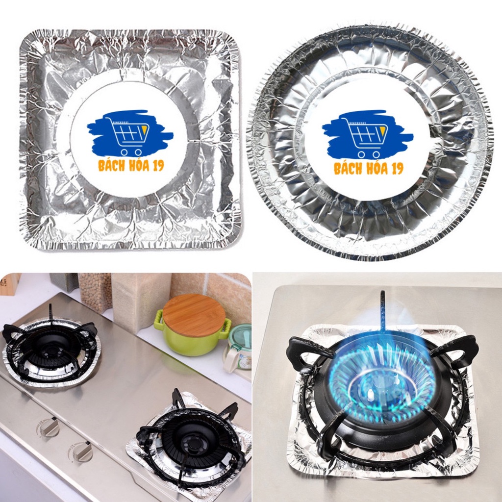 (SET 10)Tờ giấy bạc lót bếp ga tiện ích loại vuông/tròn - Miếng giấy bạc lót kiềng bếp ga chống tràn dầu mỡ-ảnh thật