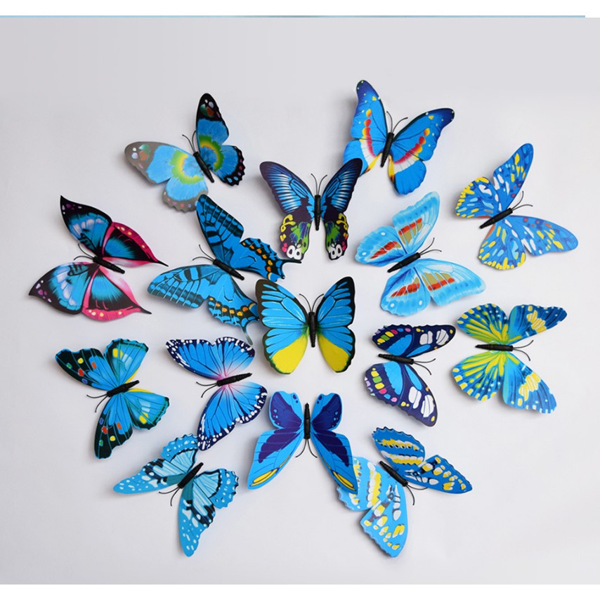 Set 12 bướm gắn tủ lạnh sẵn nam châm dùng để trang trí tủ lạnh, tiệm nail, dán tường...(Giao mẫu ngẫu nhiên)