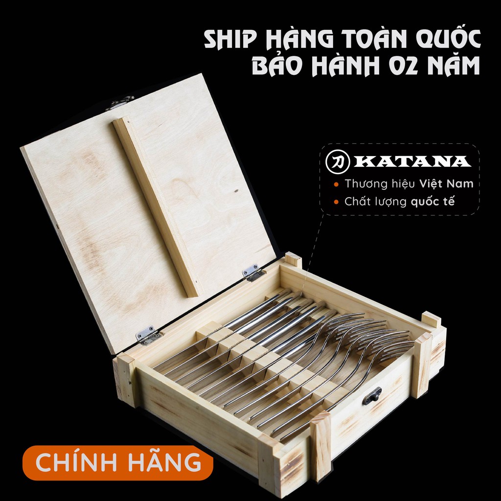 SET 12 CHIẾC DAO DĨA KATANA STEAK HỘP GỖ CAO CẤP - KATASTK01