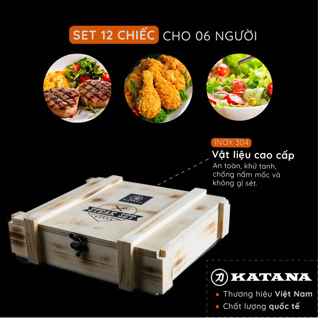 Set 12 chiếc dao dĩa KATANA Steak Hộp gỗ cao cấp - KATASTK01