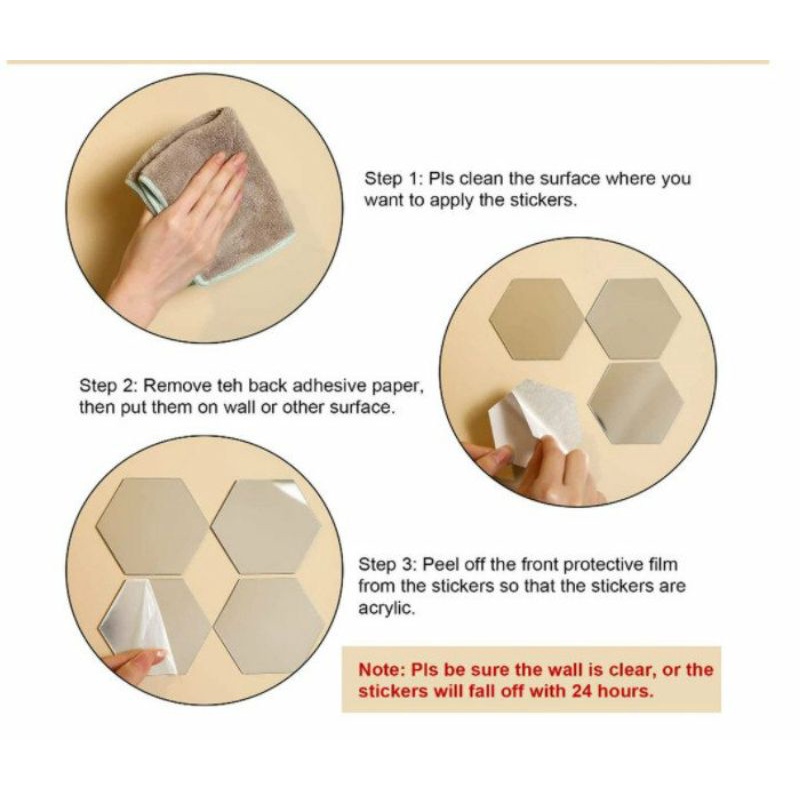 - Gương dán tường acrylic 3D hình lục giác dùng trang trí phòng khách, phòng ngủ, lối đi, cầu thang, tủ quần áo ...- Dán được trên rất nhiều bề mặt: tường, gỗ, kim loại. Thích hợp lắp trên bề mặt phẳng, tránh bề mặt lồi lõm.