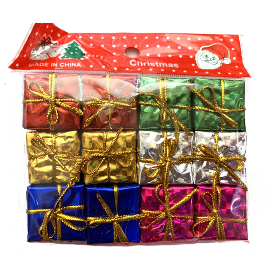 Set 12 hộp quà mini trang trí bánh sinh nhật, trang trí bánh kem, trang trí Noel- Dùng để trang trí bánh sinh nhật, trang trí cây thông Noel, trang trí nhà cửa, trang trí giáng sinh