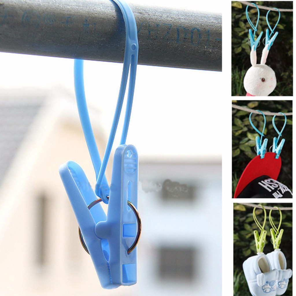 - Bộ 12 kẹp phơi đồ có dây treo giúp bạn phơi những đồ lót, tất vớ mà không sợ bay mất.