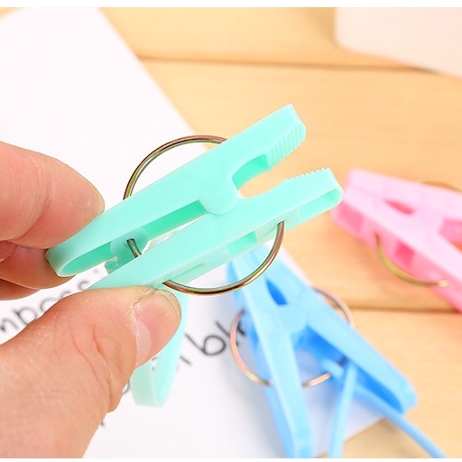 – Bộ 12 kẹp phơi đồ có dây treo giúp bạn phơi những đồ lót, tất vớ mà không sợ bay mất.