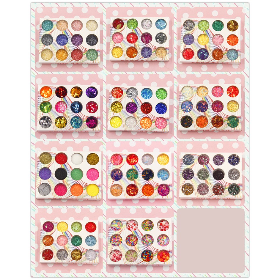 Set 12 lọ kim tuyến, bột ngọc trai, nhũ - Phụ kiện trang trí Resin