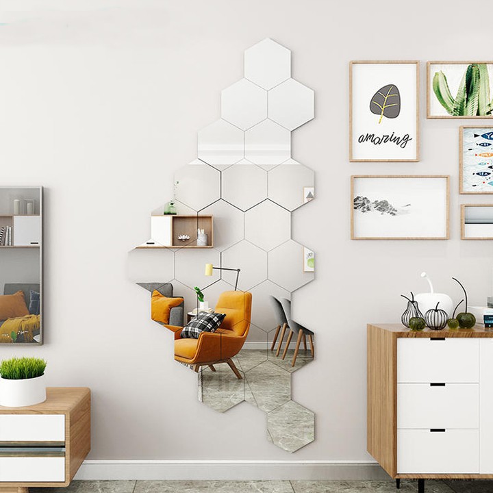 Nhà cửa & Đời sống > Trang trí nhà cửa > Gương || Set 12 miếng gương trắng dán tường 3D hình lục giác kích thước 17cm x 17cm, Trang Trí, Sang Trọng, Hiện ĐạiCòn hàng