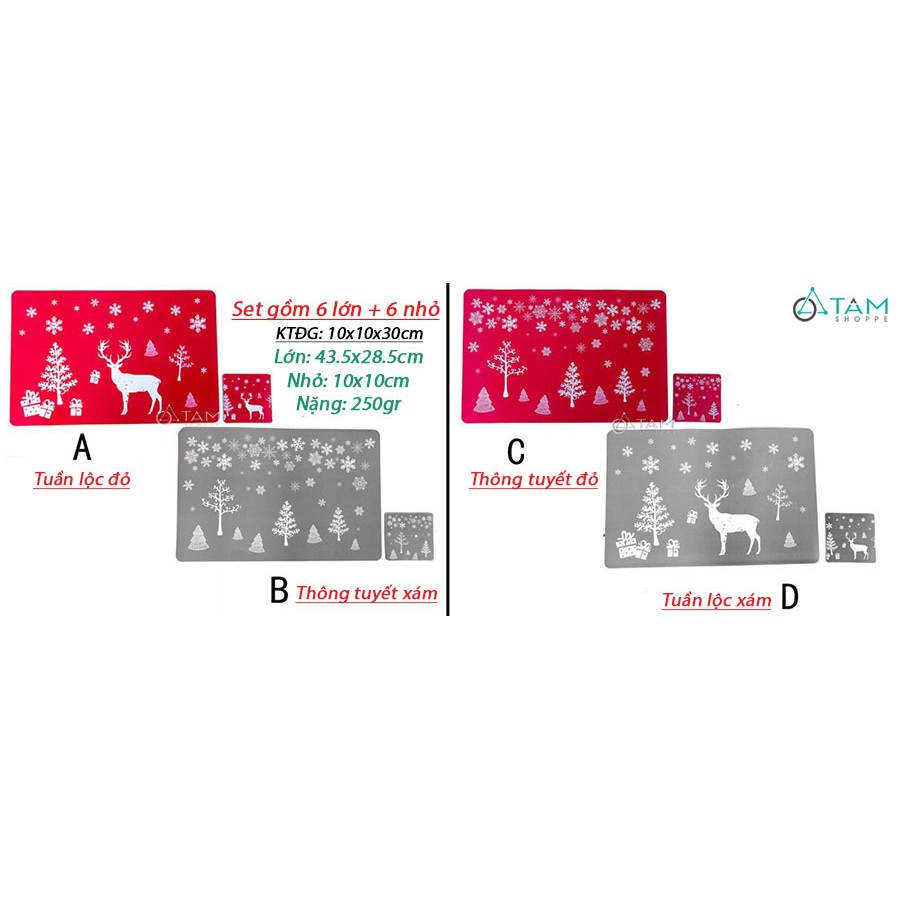 Set 12 tấm lót bàn ăn lớn nhỏ chủ đề Giáng sinh X-TLBA-01