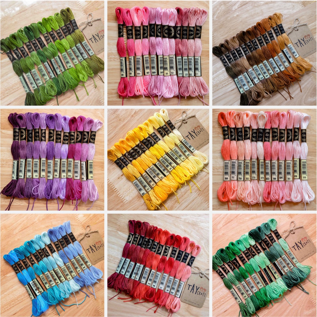 Sở thích & Sưu tầm > Dụng Cụ May Vá || Set 12 tép chỉ thêu Airo theo tông màuCòn hàng