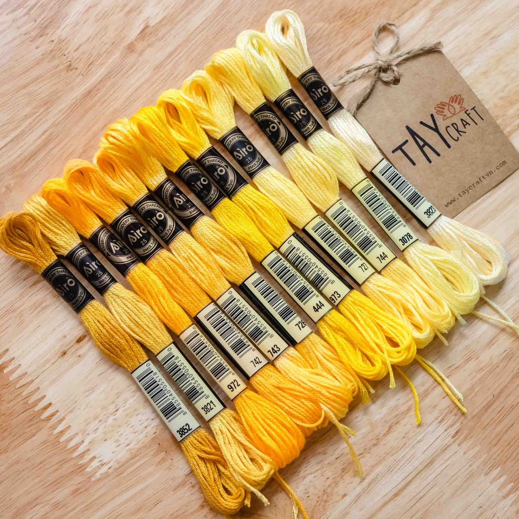 Dành cho những ai đang tìm kiếm chỉ thêu đẹp giá thân thương ✨Set chỉ thêu của hãng Airo gồm 12 tép theo tông màu là một lựa chọn phù hợp cho những bạn đang có nhu cầu sử dụng màu chỉ thêu theo một tông màu nhất định. Bảng màu của Airo rất nhẹ nhàng và dễ phối, tạo cảm giác tự nhiên và cực sang, phù hợp với rất nhiều kiểu thêu. Chắc hẩn các bạn đã biết là việc lựa chọn màu sắc sẽ ảnh hưởng rất nhiều đến tổng thể, độ hài hòa của bức tranh thêu. Vì vậy, TAY Craft đã lựa chọn trong mỗi set những màu sắc thiết yếu, sắc độ hài hòa và thường được sử dụng nhiều nhất để bạn dễ dàng sử dụng và phối màu cho tác phẩm thêu của mình.