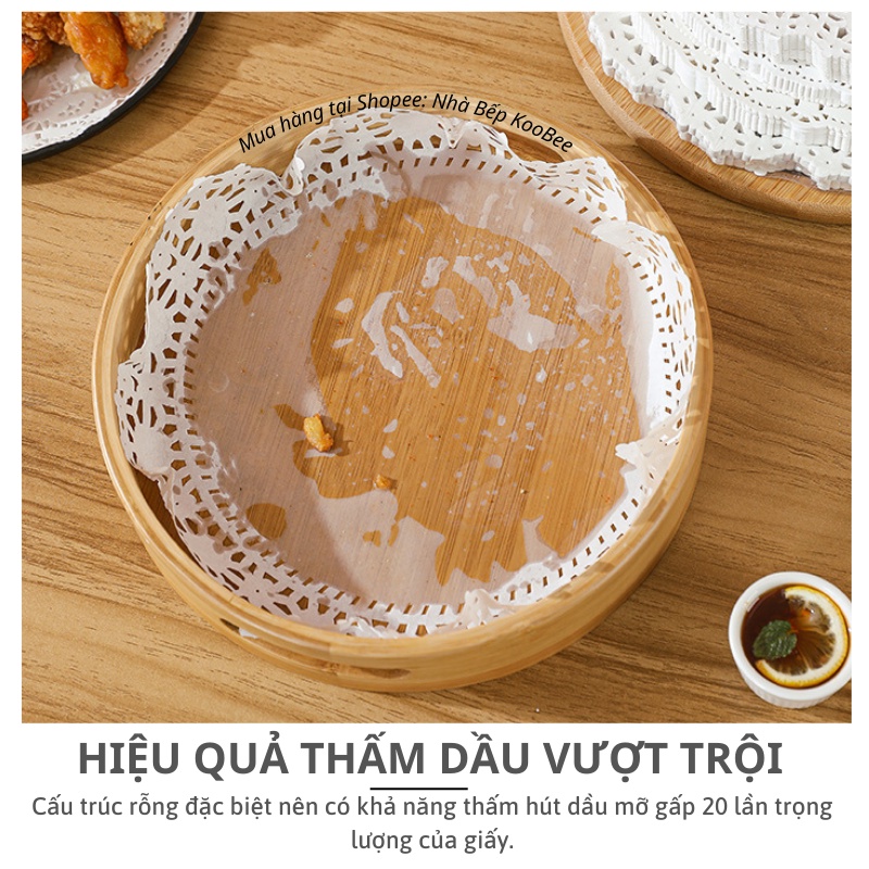 Giới thiệu Set 140 tờ giấy thấm dầu ăn thực phẩm họa tiết hoa văn ren - Giấy lót trang trí decor món ăn (PKB12)