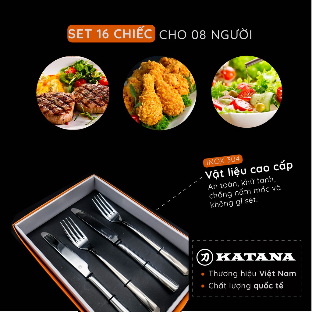 Giới thiệu Set 16 món DAO DĨA ăn bít tết, steak KATANA INOX 304 cao cấp, sang trọng - KATA140