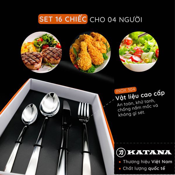 Giới thiệu Set 16 món dao, thìa, dĩa bàn ăn KATANA INOX 304, vân trơn sáng bóng cao cấp, sang trọng - KATA400
