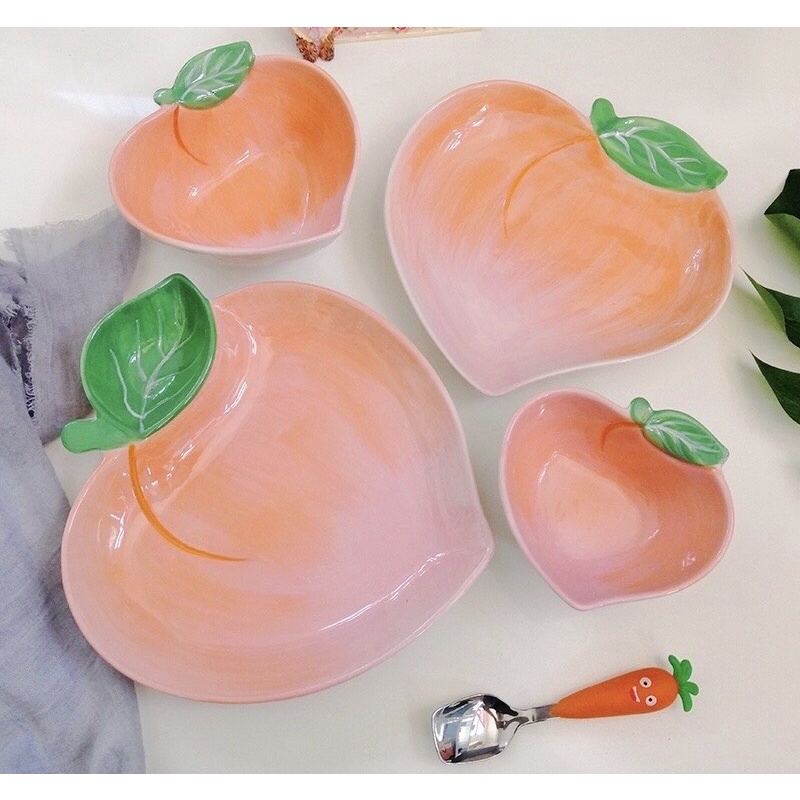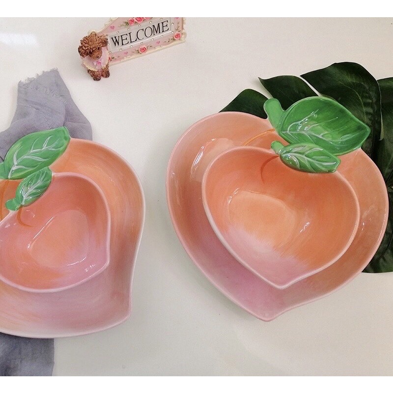 Nhà cửa & Đời sống > Bộ đồ bàn ăn > Tô || Set 2 Bát sứ hình quả đào hồng xinh xắn, bộ đồ bàn ăn, tô bát ăn dặm cho béCòn hàng