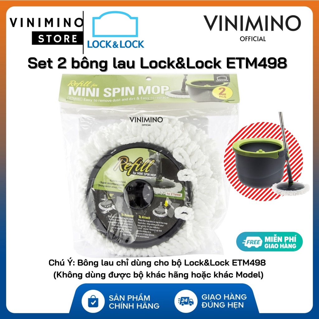 Nhà cửa & Đời sống > Dụng cụ chăm sóc nhà cửa > Cây lau nhà || Set 2 bông lau nhà Model ETM451 dùng cho bộ LOCK LOCK ETM498 - Vinimino StoreCòn hàng