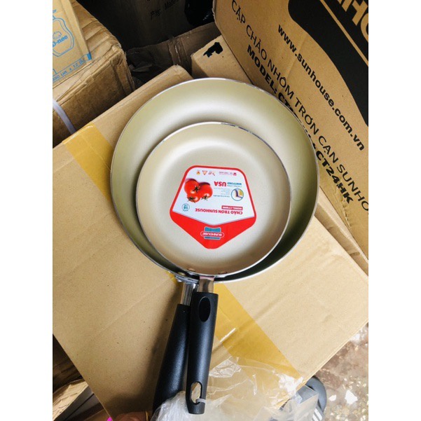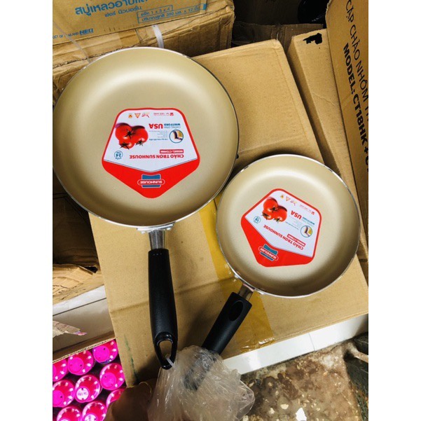 Nhà cửa & Đời sống > Dụng cụ nhà bếp > Chảo || Set 2 chảo chống dính Sunhouse lòng vàng 18cm+24cmCòn hàng