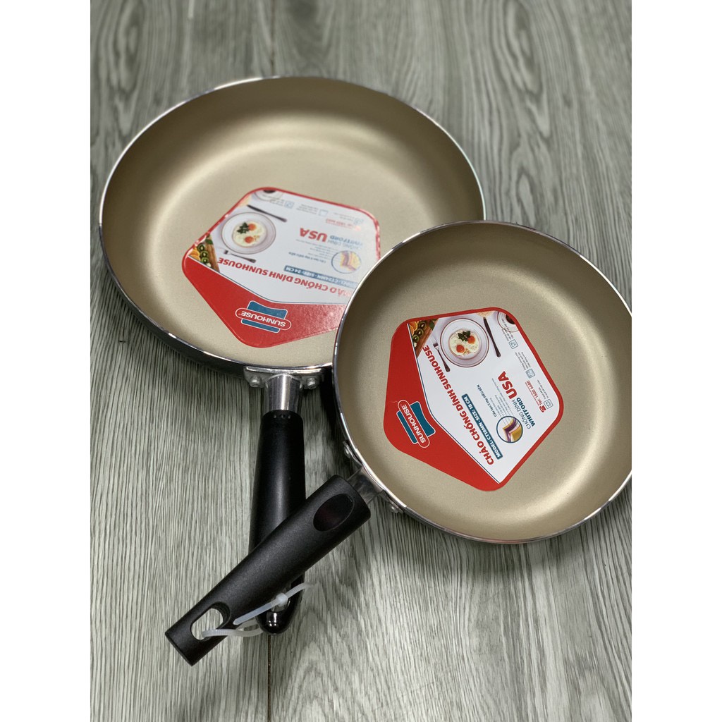 Set 2 chảo chống dính Sunhouse lòng vàng 18cm+24cm