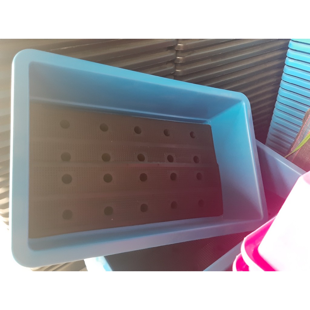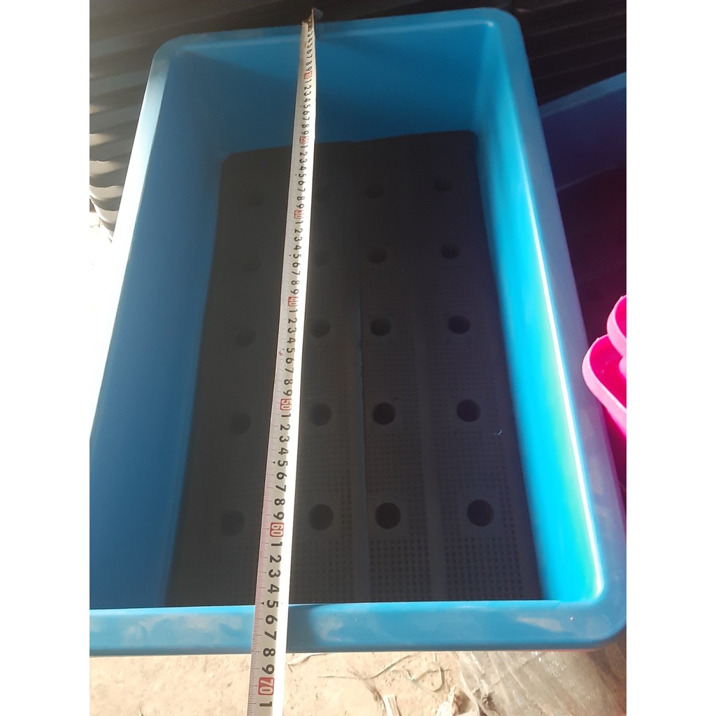 - Sản phẩm gồm 2 chậu to nhất trồng rau 68x43x17Tính năng nổi bật: 1. Lưới nhựa thông minh: Để ngăn cách đất và đáy chậu để nếu tưới nước nhiều quá thì nước sẽ ngấm xuống dưới đáy, ngăn cách với đất khoảng 3 cm nên sẽ không sợ cây bị úng vì tưới nhiều nước. 2. Lỗ thoát nước và lấy oxy thông minh: Cách đáy khoảng 2 cm giúp thoát nước khi gặp lượng mưa nhiều hoặc tưới vượt mức đồng vừa thông thoáng oxy cho cây. Đồng thời sẽ lắng tụ giúo giữ được chất dinh dưỡng bị rửa trôi khi tưới nhiều hoặc mưa nhiều. Nằm phía bên hông giúp chậu vẫn giữ được tính thẩm mỹ. Không như loại chậu thông thường có lỗ dưới đáy chậu khiến đất vương vãi ra ngoài theo nước mà lỗ thông minh này sẽ giữ đất lại.