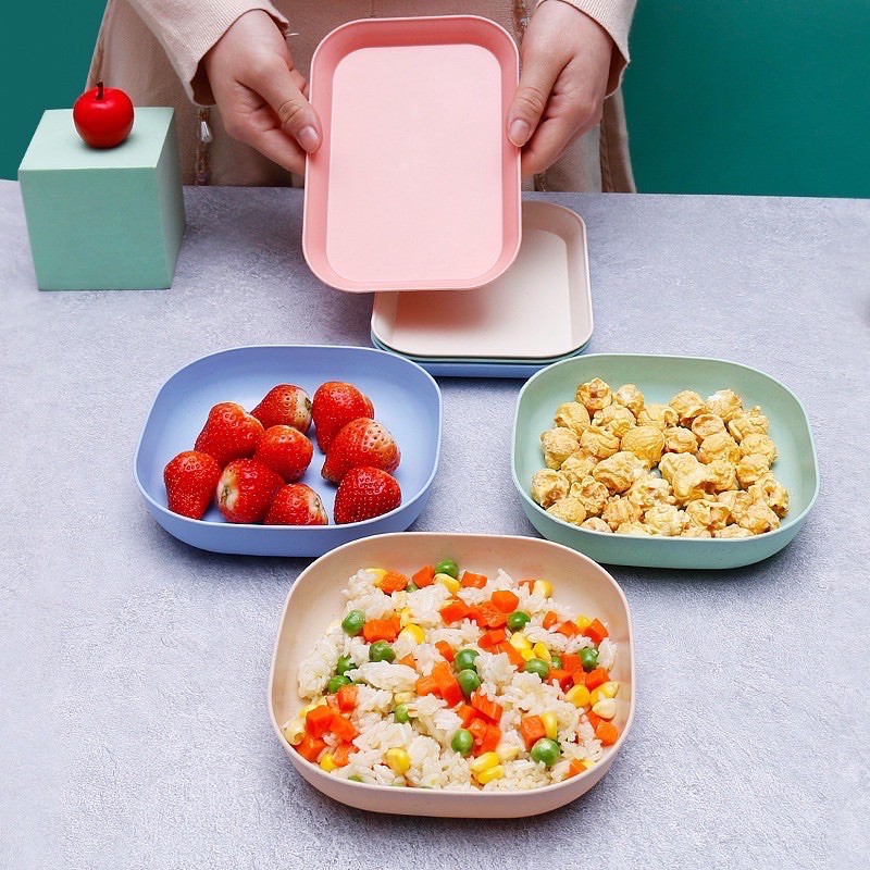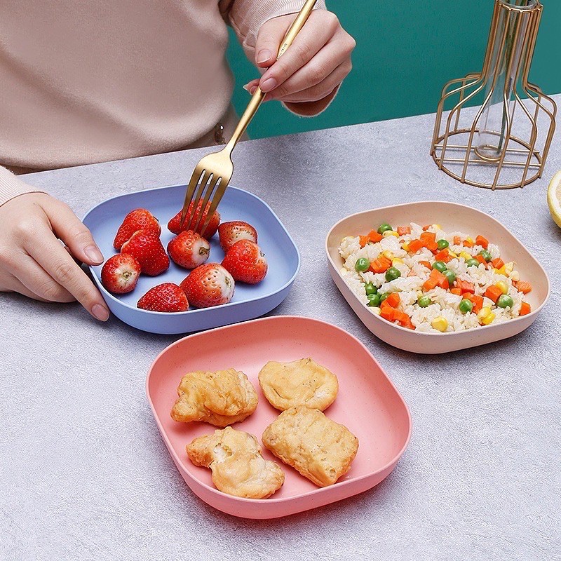 ☘màu pastal siêu xinh, đĩa lúa mạch hình vuông đựng thức ăn, hoa quả, bánh kẹo