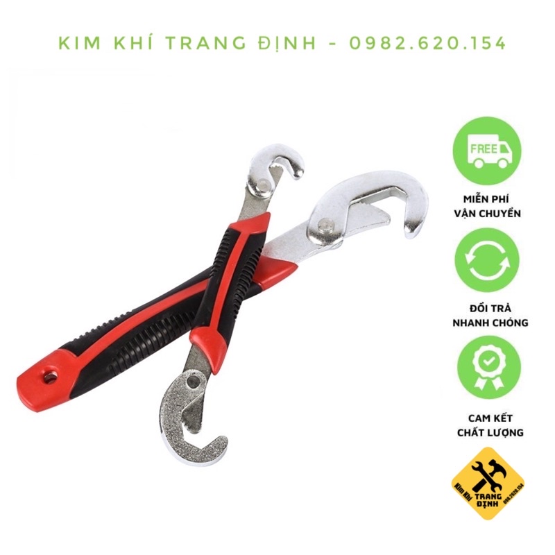 - Bộ sản phẩm bao gồm 02 cái, mỗi cái 02 đầu, một đầu lớn và một đầu nhỏ với kích thước đường kính dao động từ 9 đến 36mm, nên có thể mở được tất cả các loại bù lông ốc vít với các hình dáng và kích thước khác nhau, ngoài ra có thể vặn ống tròn, ...