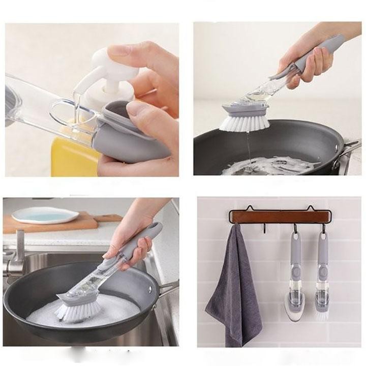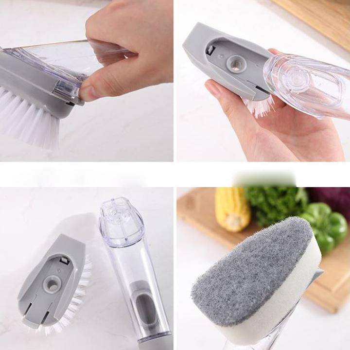 mang chức năng CHÙI, dụng cụ được thiết bị đầu chùi có các lông nhựa cứng giúp bạn chùi sạch các vết bẩn, vết cặn thức ăn bám trên thân nồi, chảo.