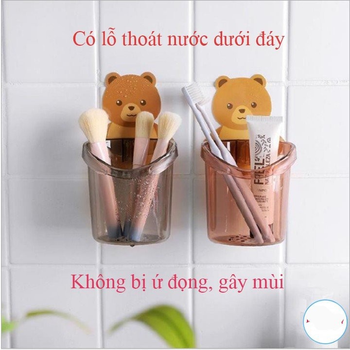 - Cốc đựng bàn chải đánh răng hình chú gấu bạn không phải lo tới vấn đề đục tường bới với miếng dính vô cùng chắn chắn chiếc cốc sẽ được cố định cho bạn, lại vừa đảm bảo cho bức tường của bạn không gây mất thẩm mĩ nếu sau này tháo ra